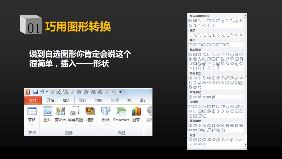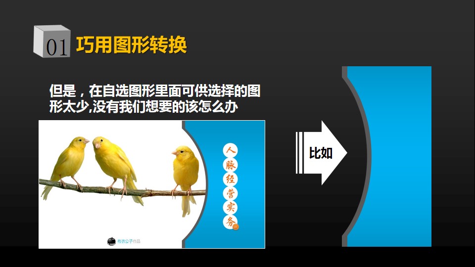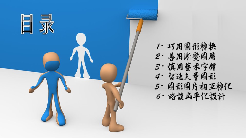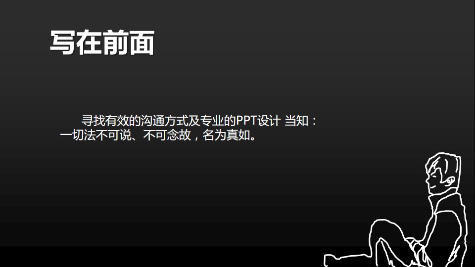 :怎样让演示出彩,写在前面:寻找有效的沟通方式及专业的PPT设计 当知:一切法不可说、不可念故,名为真如。目录:1、巧用图形转换;2、善用渐变图层;3、慎用艺术字体;4、智造矢量图形;5、图形图片相互转化;6、论坛扁平化设计。