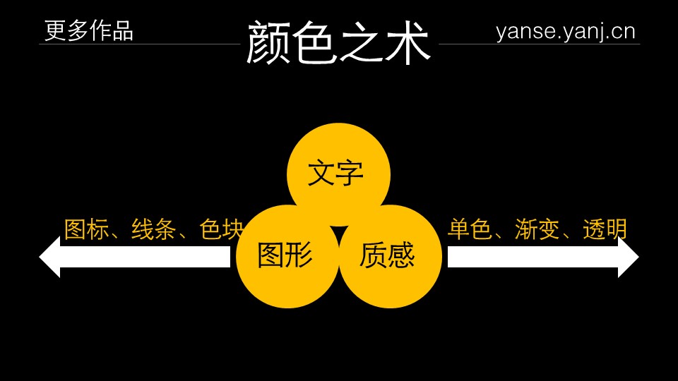 :风格借鉴之术,风格借鉴,颜色、质感、文字、图片、图形、版式、颜色之术、图形之术、文字之术、版式之术;颜色之术:主色调、辅助色、强调色/点缀。