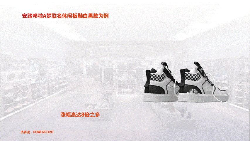 当然,如果加上一个背景的话,我选择加一张安踏门店的图片,让观看者更加带入到这张PPT本身传达的一种消费氛围。