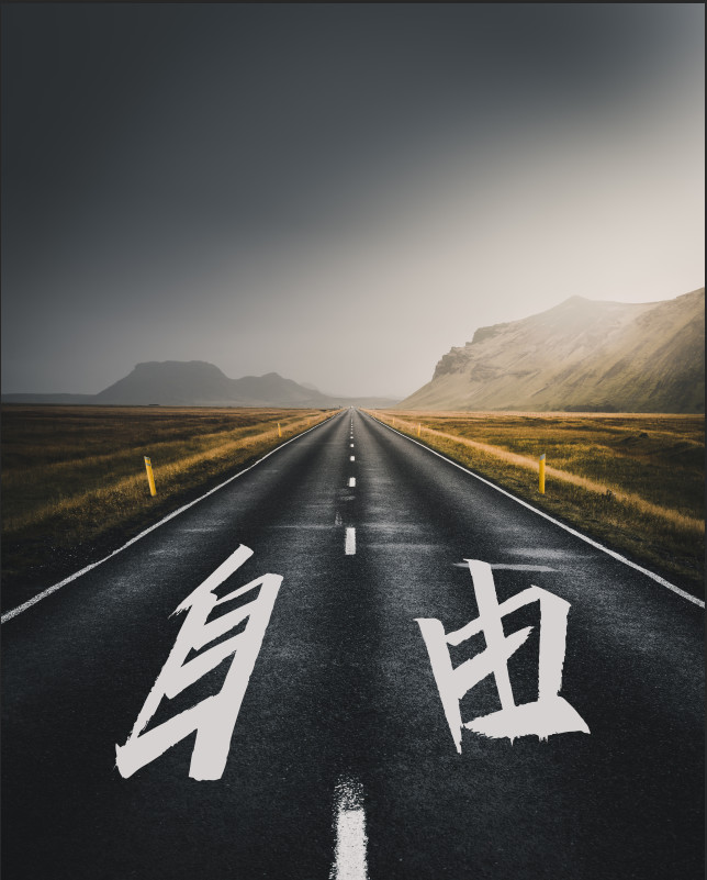 OK,现在和路面融为一体的自由已经书写在路面上,这条远方的自由之路,你喜欢吗?