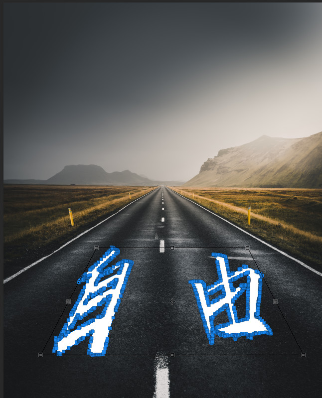 现在我们已经让文字书写在路面了,再进行一些修饰的工作,让它伪装地更好。