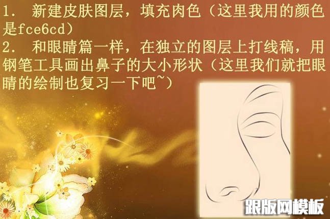 鼻子是面部比较重要的器官,直接影响人物的容貌。因此鼠绘的时候一定要注意好鼻子的比例及细节刻画。这样才能画出完美的人物。 最终效果鼻子的结构图。#p#副标题#e#1、新建一个大小适当的文档。背景填充皮肤色:#fce6cd。 2、新建一个...
