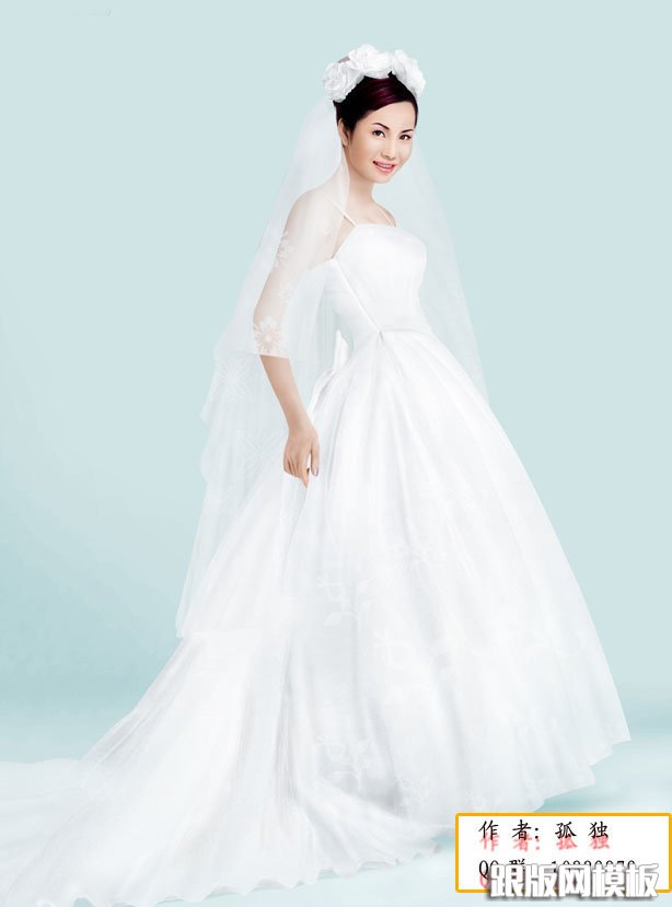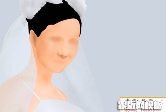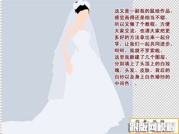1、新建一个大小适当的文档,背景填充淡蓝色。新建几个图层,分别画出头发、皮肤、背后纱巾以及身上的白色婚纱。