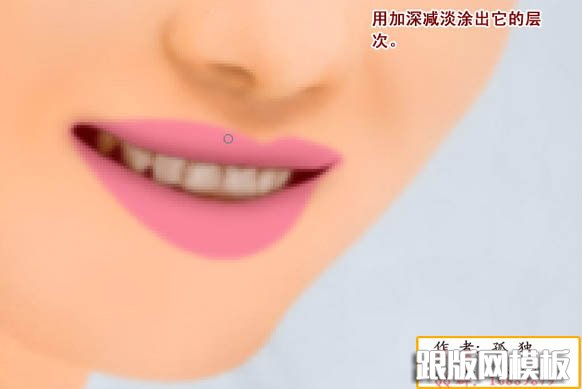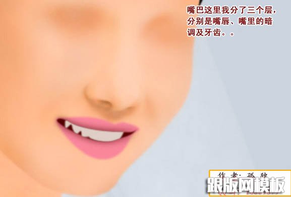 5、嘴巴这里我分了三个图层,分别是嘴唇、嘴里的暗调及牙齿。