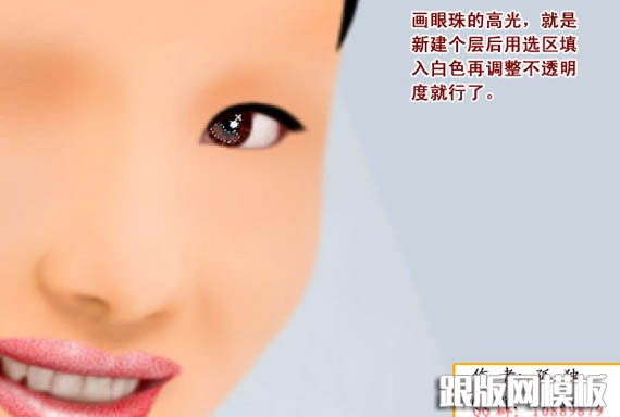 11、画眼珠的高光要新建一个图层,用选区填入白色,再调整不透明度就行了。