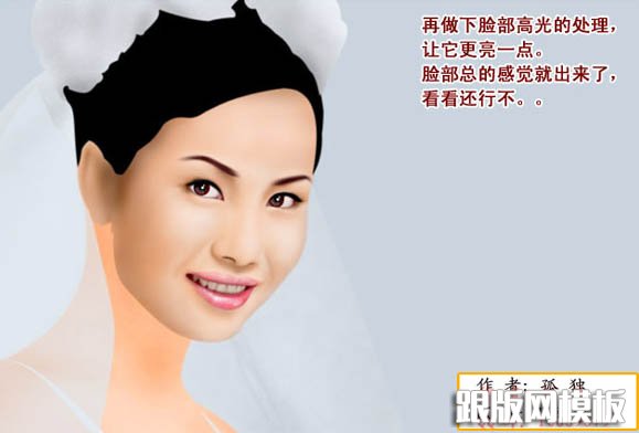 16、再做下脸部的高光处理,让它更亮一点。脸部总的感觉就出来了。