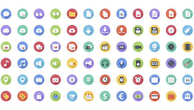 700+可以调整颜色的长阴影风彩色ICON矢量ppt图标下载