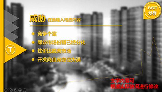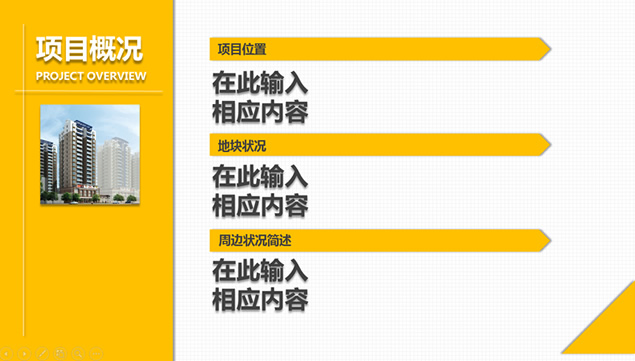 :项目提案报告ppt模板,项目前言,swot分析,项目优势,存在威胁,土地价值决策,项目概况,思路框架,房地产项目提案报告ppt模板。