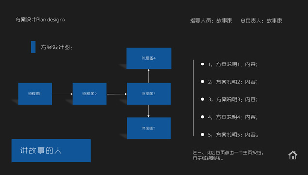 :项目方案解说,项目方案介绍,方案设计,方案说明,团队人员分工,项目成果图片展示,项目课题方案解说演讲Modern Flat色块风格ppt模板。