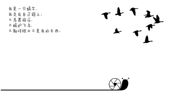 :我是一只蜗牛,Creative by @贰少_Temmon,我是一只蜗牛,我走在自己路上;不羡慕骏马,不嫉妒飞鸟,不期待根本不是我的东西... ...我是一只蜗牛小故事ppt模板。
