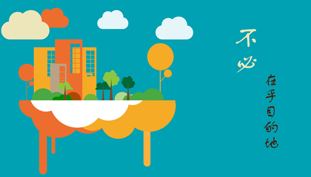 :人生就像一场旅行,不必在乎目的地,扁平化精美设计素材元素,可以自由分层与填充颜色,扁平化活力色彩ppt模板。