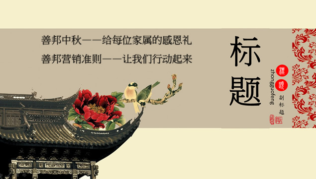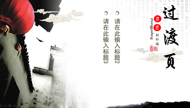 :海浪,梅花,水墨竹,灯笼,荷叶,古典建筑,青花瓷,金鱼等中国风元素ppt模板。