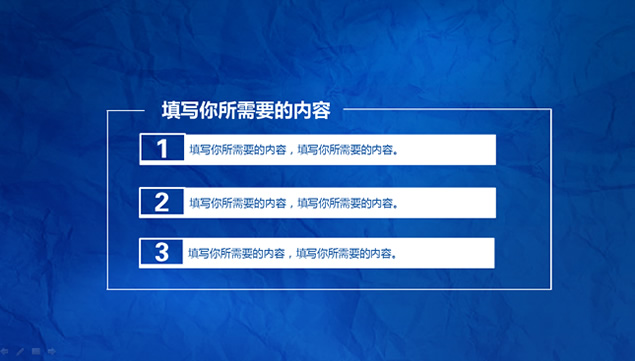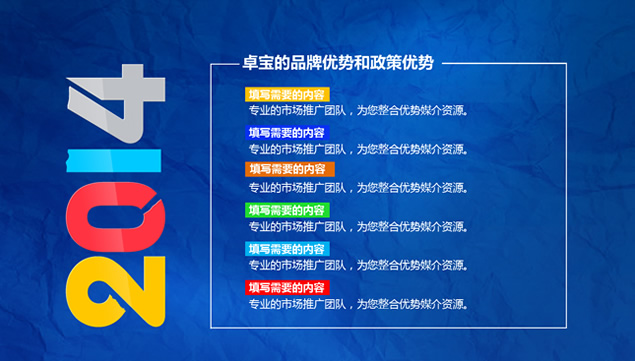 简介:折纸背景,皱纸效果背景,蓝色经典工作总结ppt模板,漂亮的蓝色经典2014年终工作总结汇报动态ppt模板。标签:年终总结,工作总结汇报。