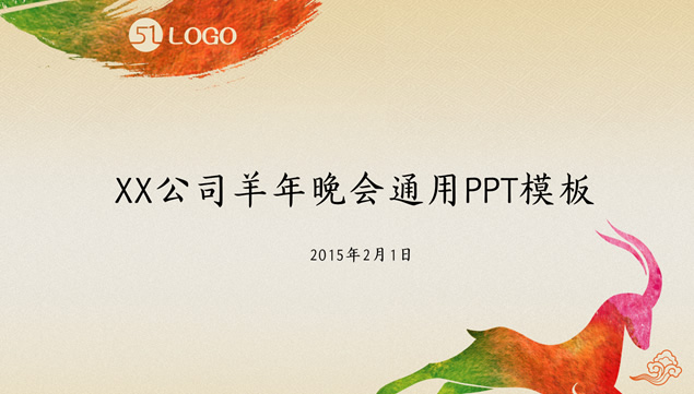 :year of goat 2015,羊,祥云,贺新年,2015羊年新年晚会ppt模板。