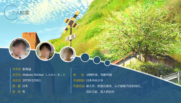 :动漫大师新海诚,动画大师新海诚,新海诚介绍ppt模板。
