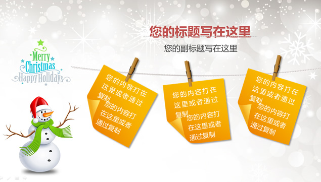 :快乐的雪人庆祝圣诞节,唯美的雪花背景,2014漂亮的圣诞节ppt模板。