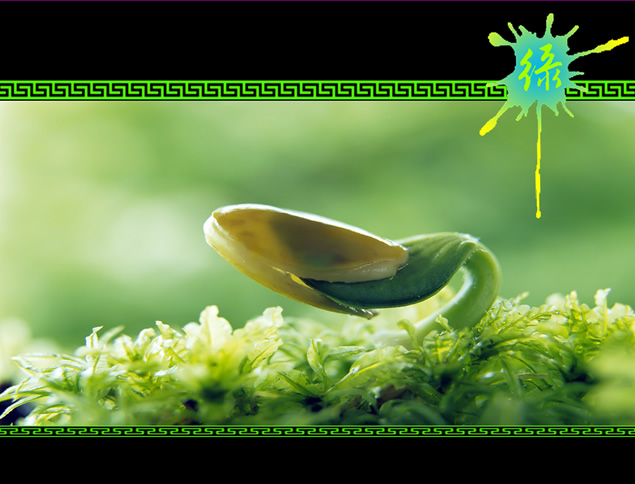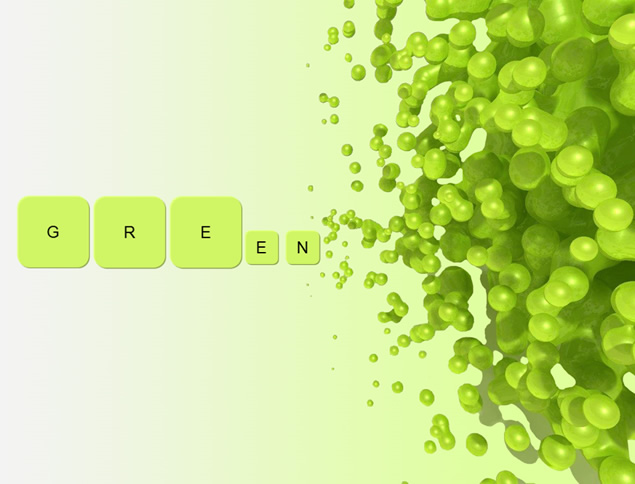 :green 字母键动态变换位置拼成了green英文单词动画,经常的图片切换效果,绿色环保动态ppt主题模板。