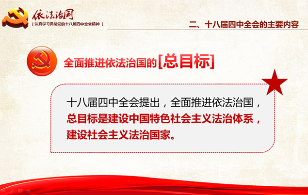 依法治国——学习贯彻党的十八届四中全会精神思想汇报ppt模板
